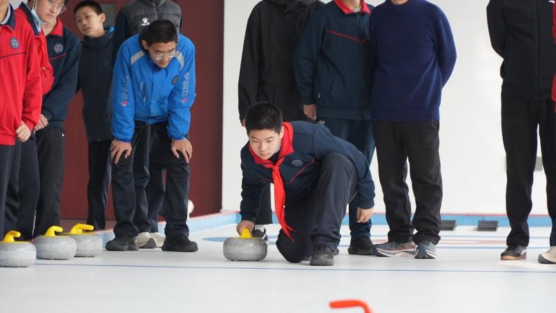 随后,同学们分别来到田径篮排馆、游跳馆、体育馆等进行参观,运动员的专业训练让大家近距离感受到了竞技体育的永不言败、奋勇拼搏、勇争第一的体育精神。来到陆地冰壶体验区,同学们分组展开趣味比赛。在教练的专业指导下,大家学习了冰壶运动的基本规则和技巧,亲身体验了这项运动的独特魅力。现场欢声笑语不断,竞技与合作的精神在比赛中悄然传递。